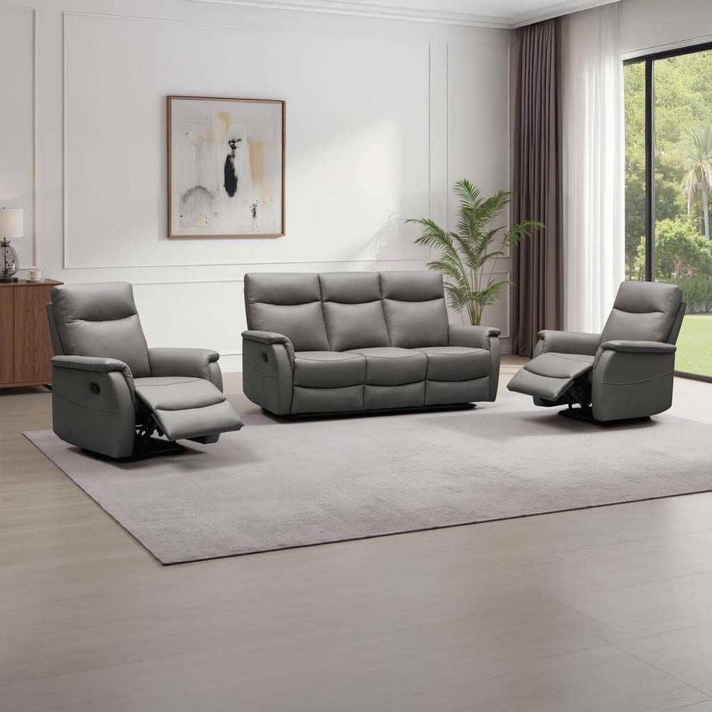 The suite includes a spacious three-seater paired with matching recliner chairs, giving everyone their own place to sit back and relax. Upholstered in a soft yet durable finish, it’s made for everyday use while maintaining a polished, modern appearance.