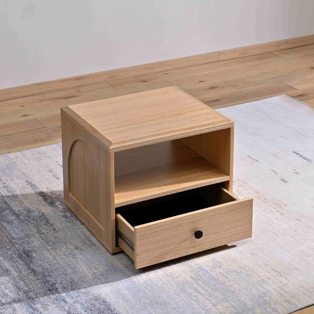 With it’s natural wood grain and soft feature design creating a timeless and inviting look, this is the perfect lamp table for your space.