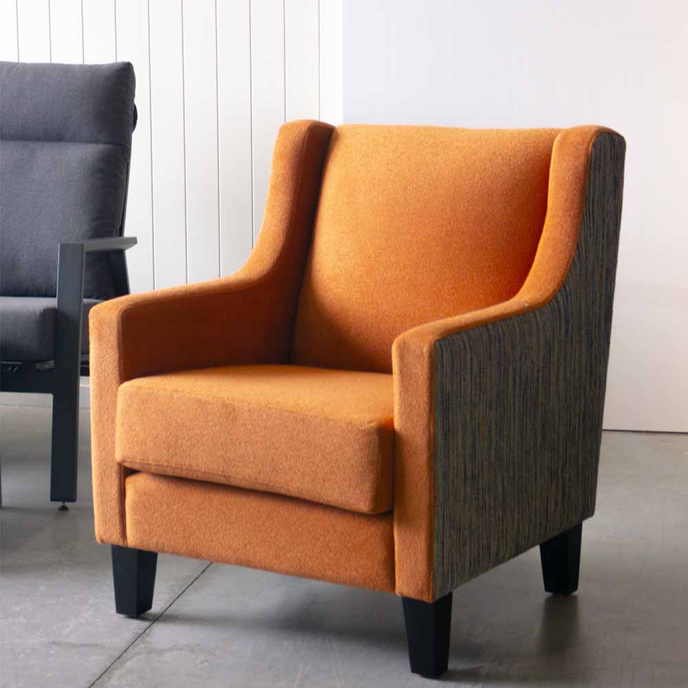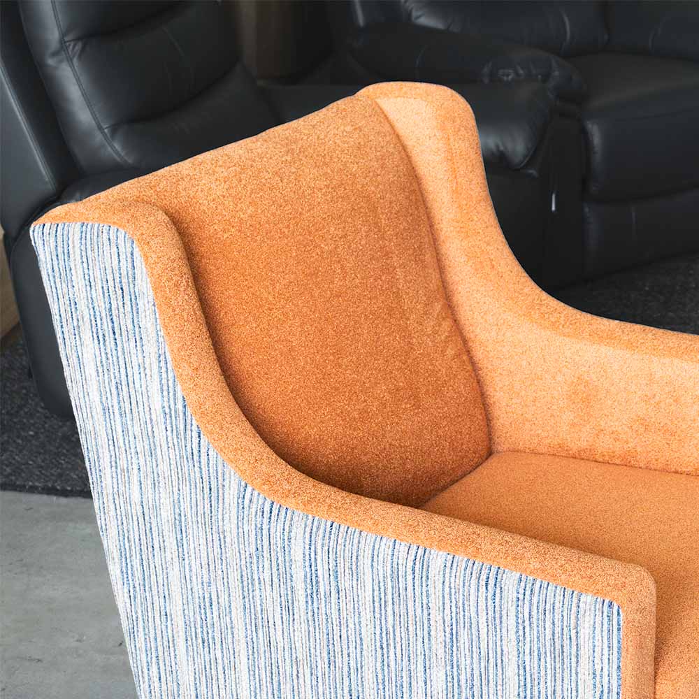 Add a pop of colour and comfort to your home with this beautifully crafted Australian Made accent chair. Featuring a warm burnt-orange upholstery paired with a stylish textured fabric on the sides, this piece brings both personality and premium comfort to any living space.