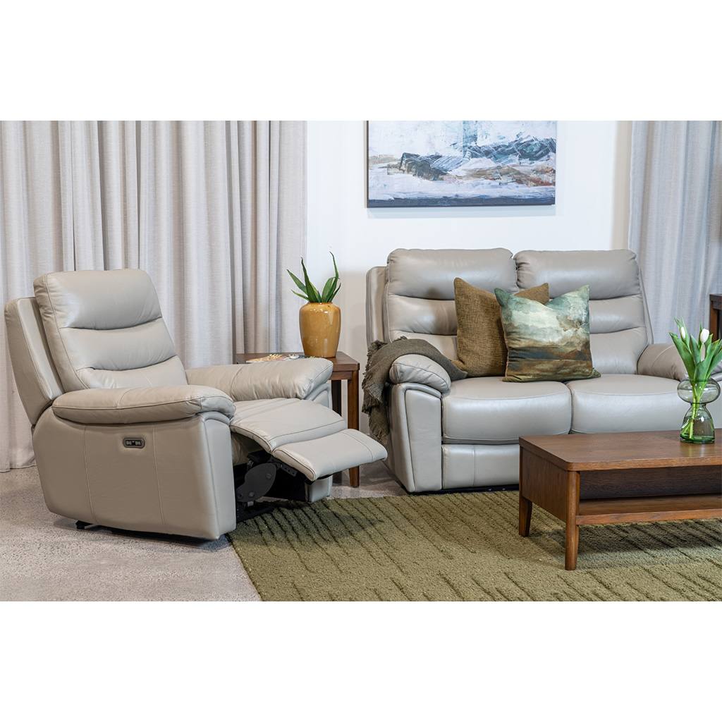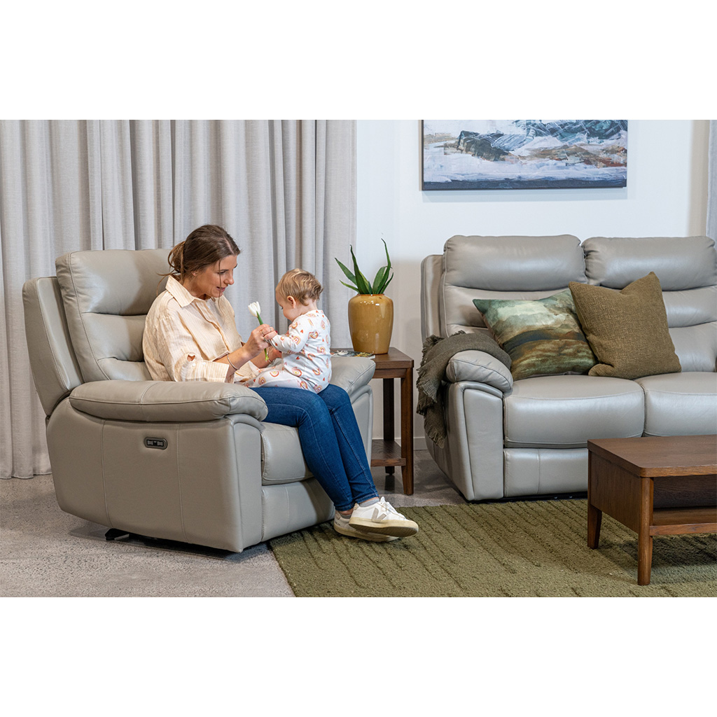 Sit back in exceptional comfort with our Derby Power Reclining Range. Designed with utmost comfortability and functionality in mind, featuring independent power seat recline and power adjustable headrest allowing you to personalize your seating position to simply suit you, all at the touch of a button. Tiered back cushioning, soft cushioned arms and twin needle stitch detailing, elevates this design for a more contemporary appearance. Sure to be everyone’s favourite seat in the house. Shop the family.