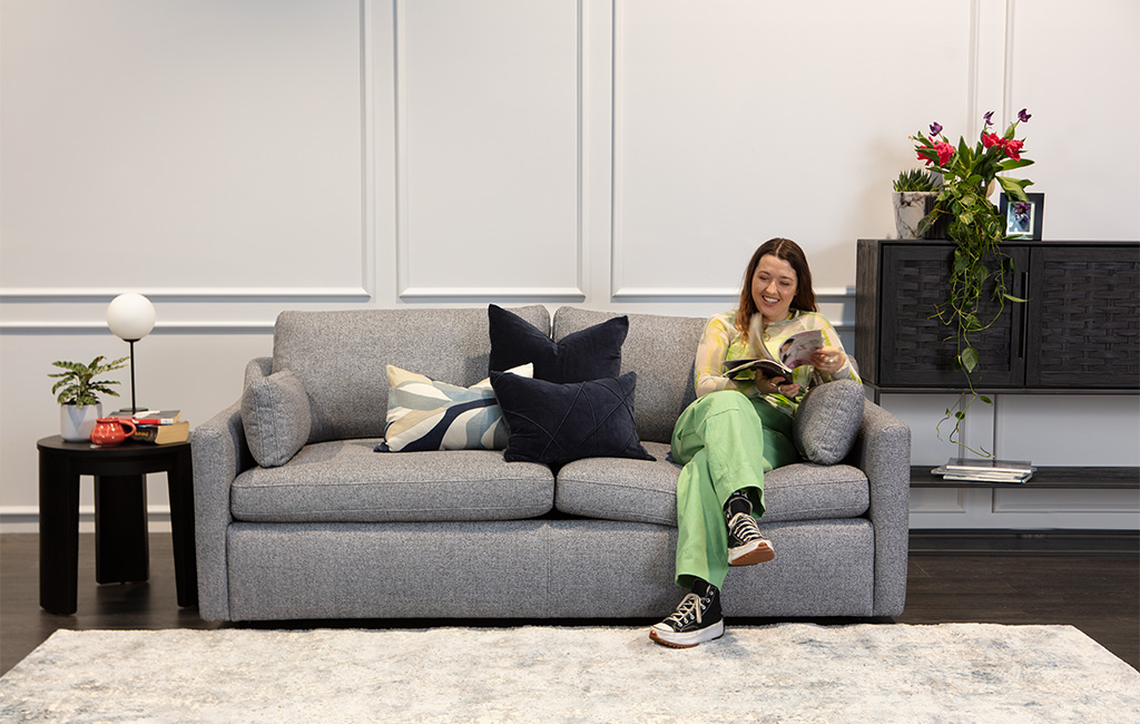 Sleek and functional, the Huntington Sofa Bed offers both contemporary style and practical comfort. With its sloped arms, plush foam and fibre cushions, and bolster pillows, it’s perfect for everyday lounging. When needed, it transforms into a comfortable bed for guests. Explore the Huntington range for other configurations, including 3 Seater and Chaise options.