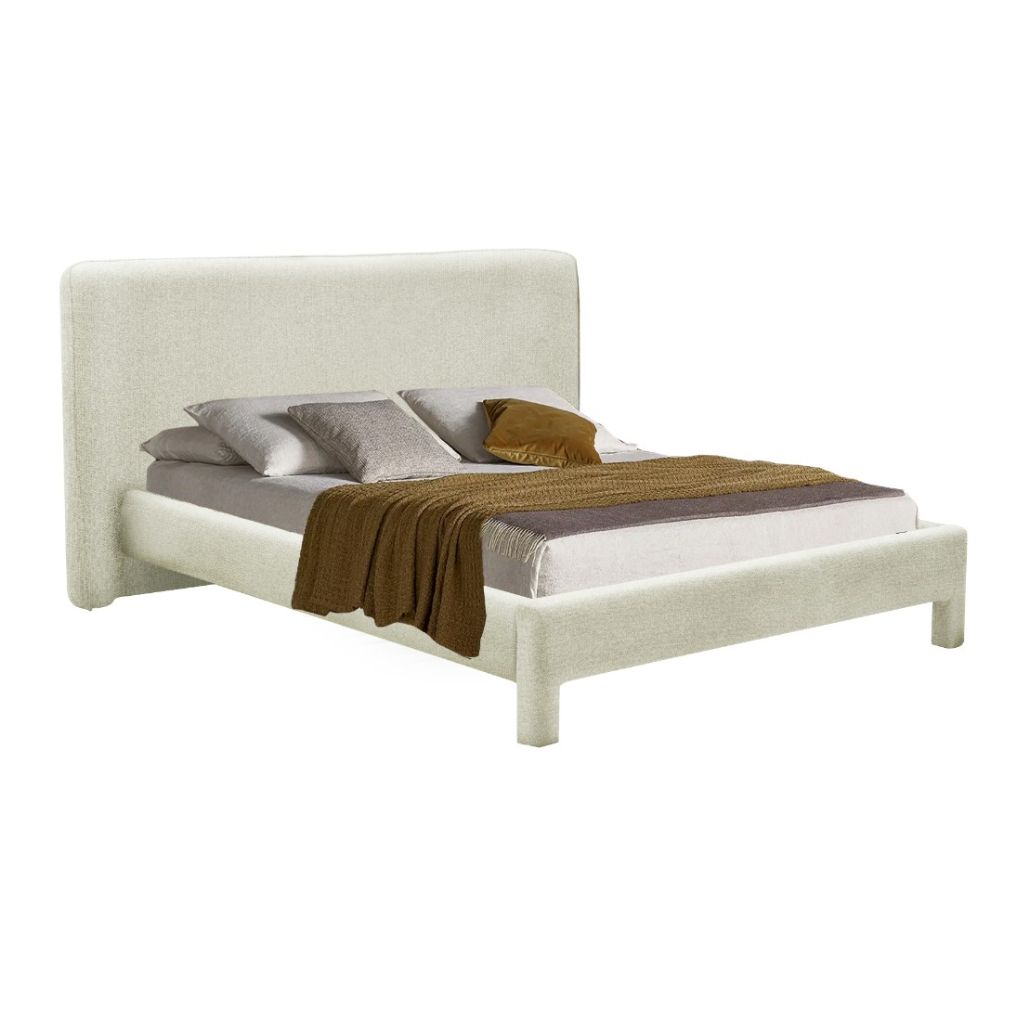 This bedframe features an extended curved bedhead with generous padding, a low footend with matching upholstered legs and Oatmeal coloured fabric upholstery for a soft and serene look in your bedroom.