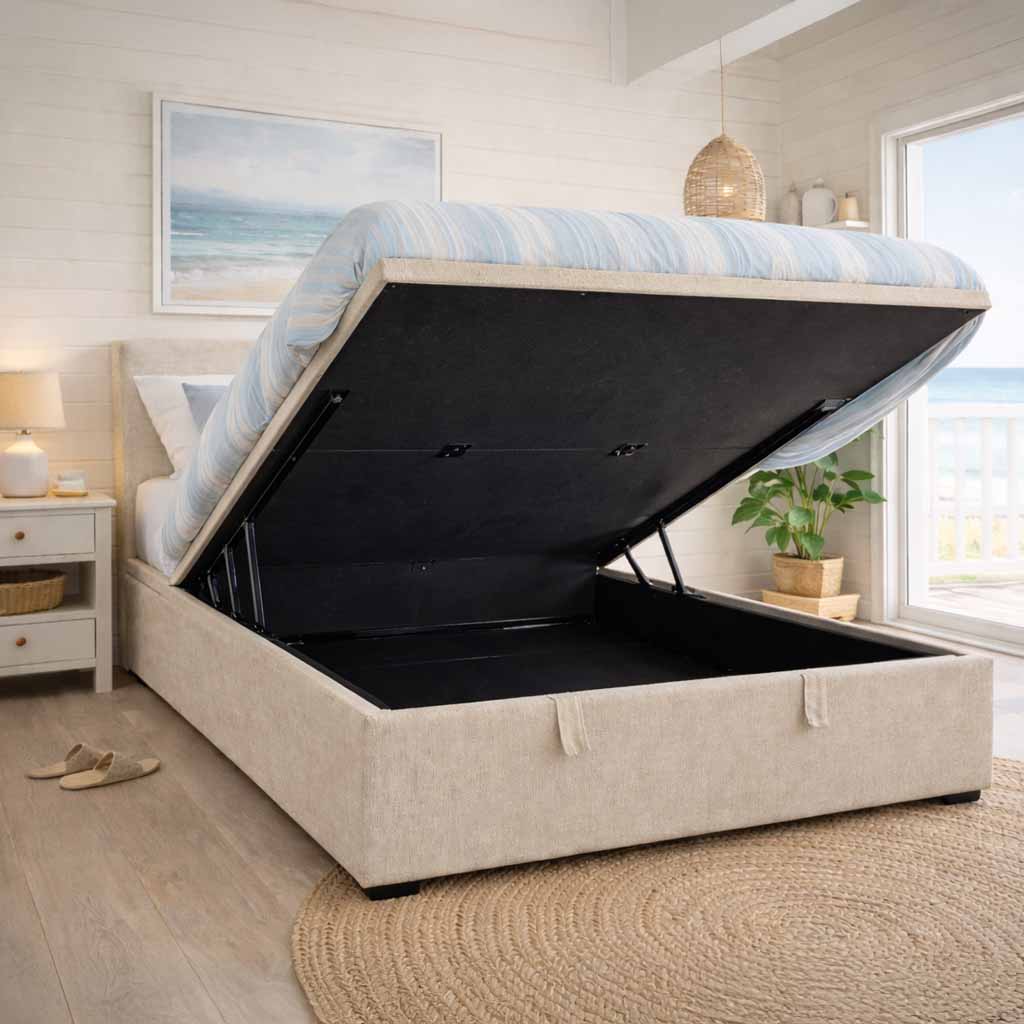 The Lonsdale Gas Lift Bed combines sleek upholstered design with effortless, space-saving storage. Its smooth gas-lift mechanism opens to reveal a generous hidden compartment—perfect for bedding, clothing, and more. Sturdy, stylish, and practical, the Lonsdale keeps your bedroom looking clean and contemporary.