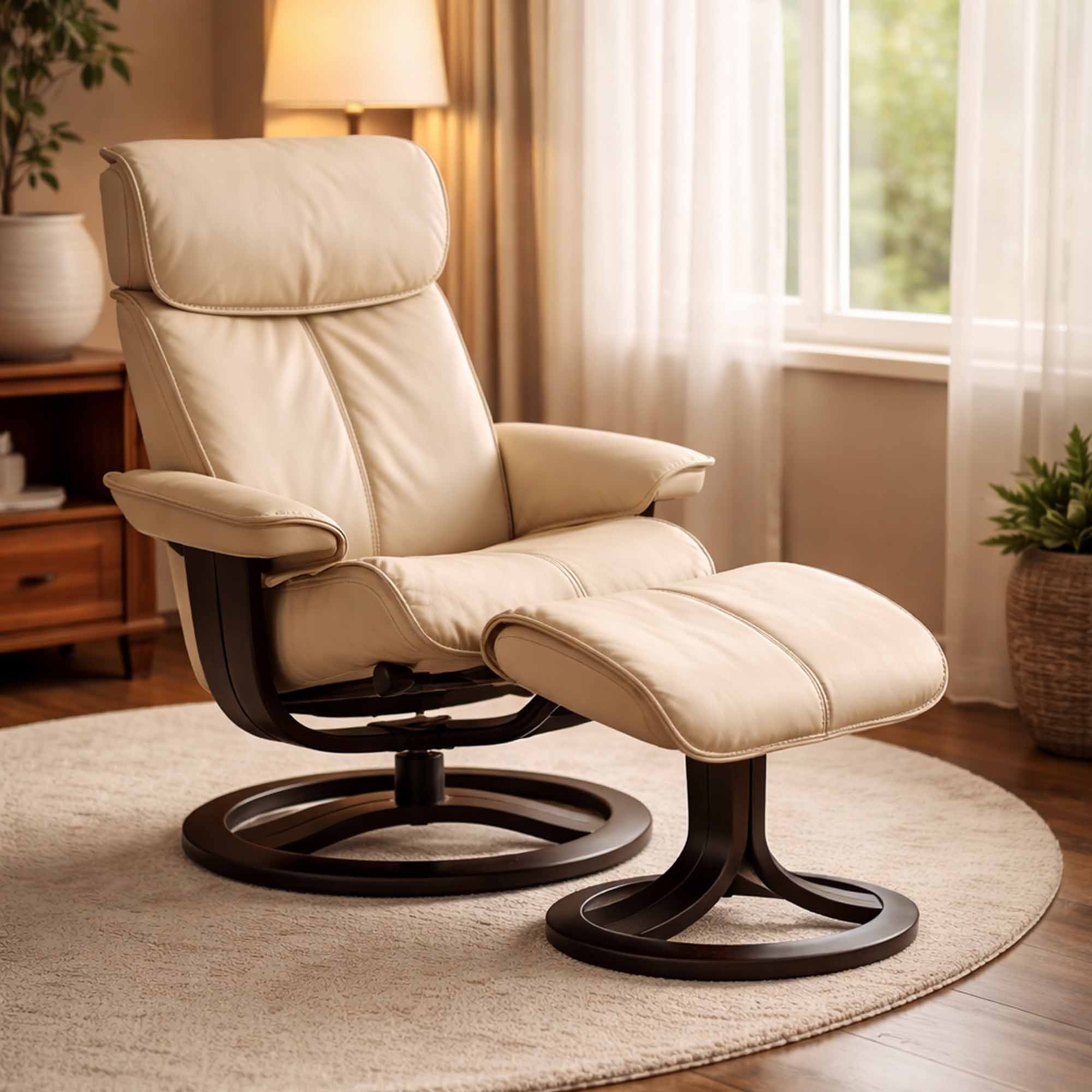 • Freestanding footstool that automatically adapts to the reclining movement ensures the best possible leg support.