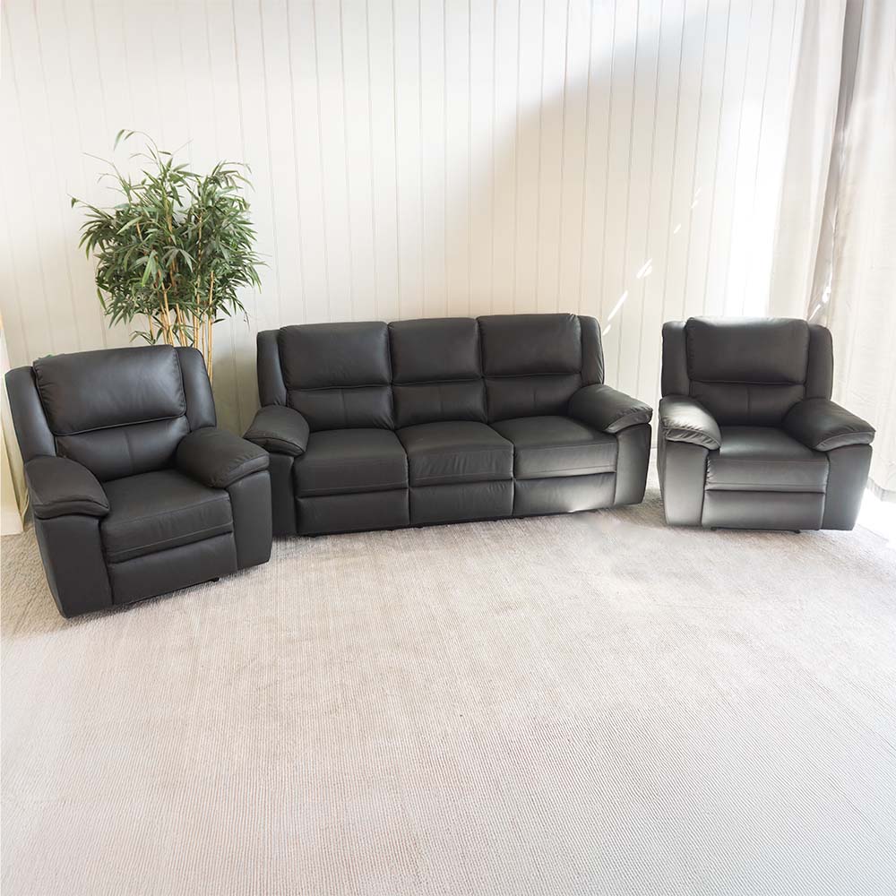 Sink into comfort with the Pluto Recliner Suite, featuring a spacious 3 seater and two matching recliners. Upholstered in soft fabric, this suite is designed for everyday relaxation with plush cushioning, supportive high backs, and smooth reclining action. Perfect for movie nights or casual lounging, the Pluto combines comfort and practicality in a sleek modern look.