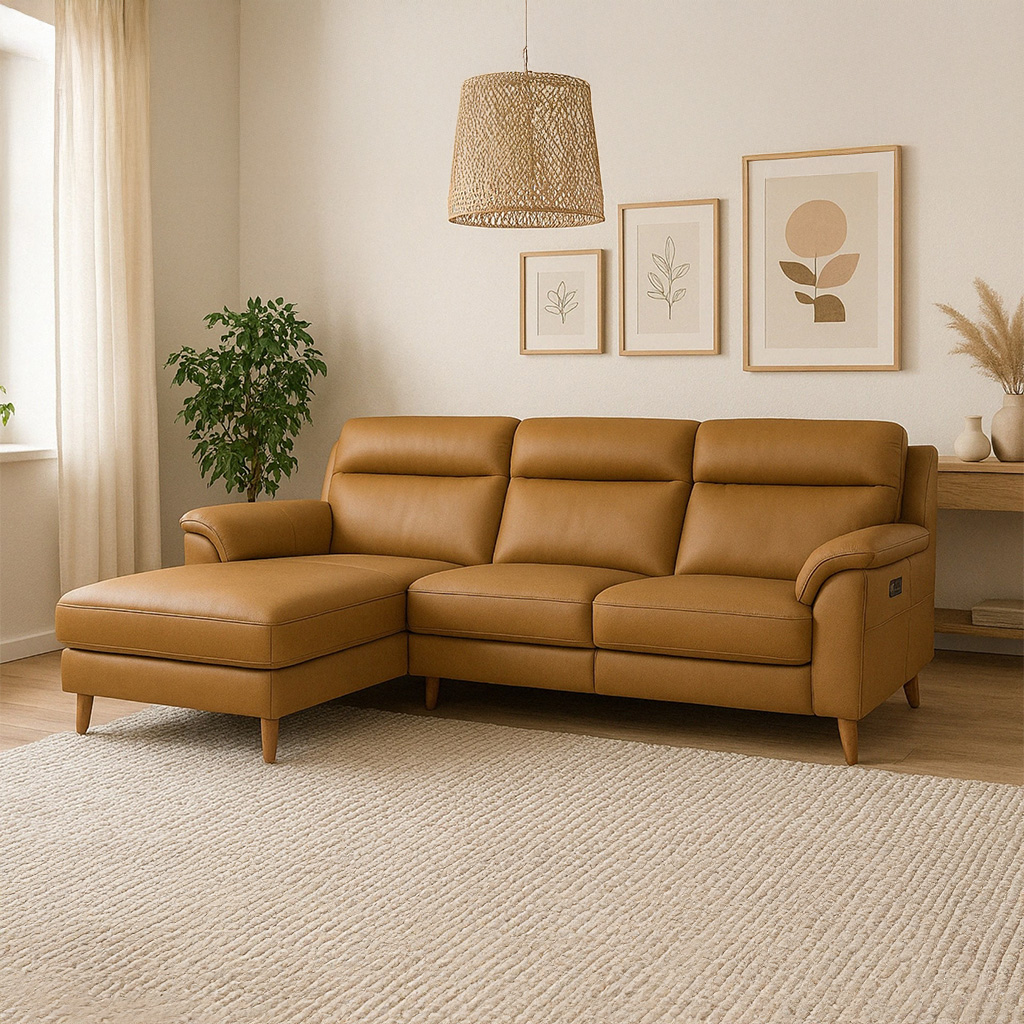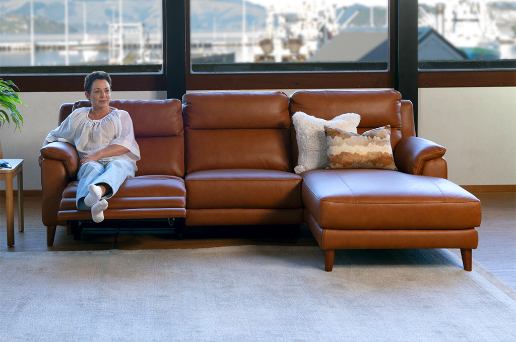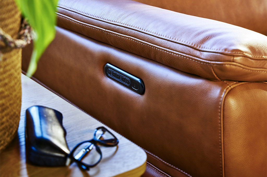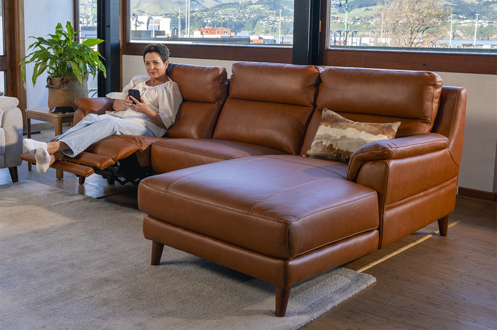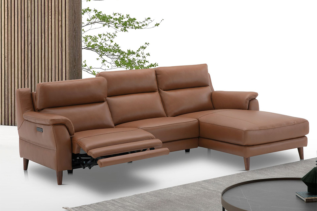 Sereno 2 Seater Power Reclining Sofa with Chaise In Leather