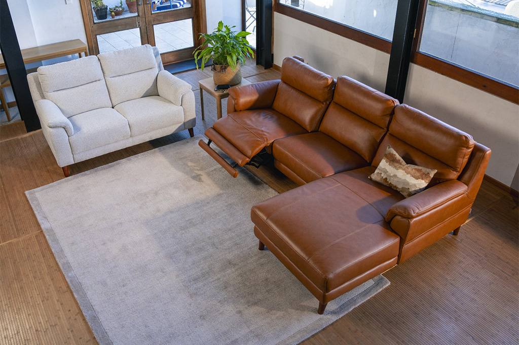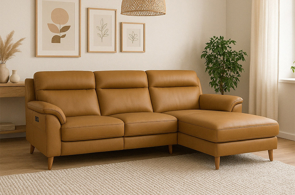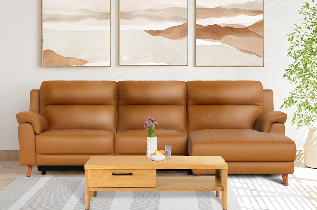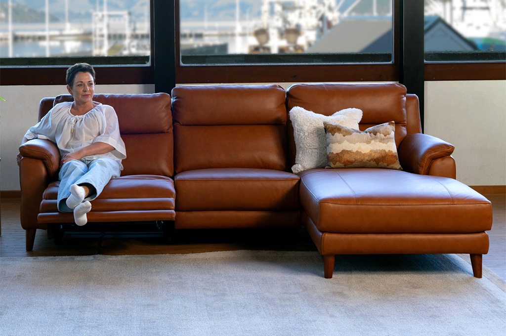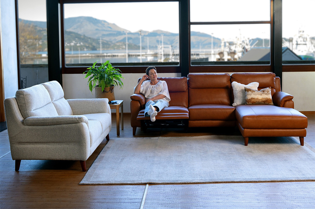 Sereno 2 Seater Power Reclining Sofa with Chaise In Leather