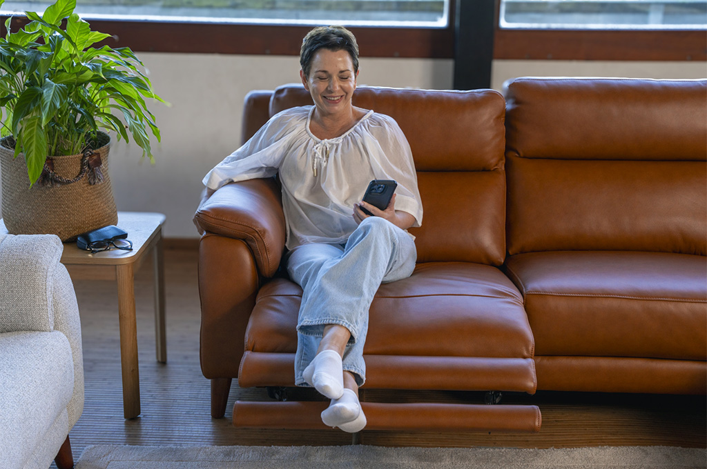 Relax in elegance with the Sereno 2 Seater Power Reclining Sofa with Chaise (right-hand facing). This mid-century marvel showcases appealing proportions and seamlessly integrated power functionality for a family-friendly design. With just a touch of a button, you can customise your seating position or recline back on the chaise to relax completely. Featuring high, tapered wooden legs, a supportive back, and soft cushioned arms, the Sereno is your go-to for stylish afternoon downtime! Also available as a 2 Seater Power Reclining Sofa with Chaise (left-hand facing).