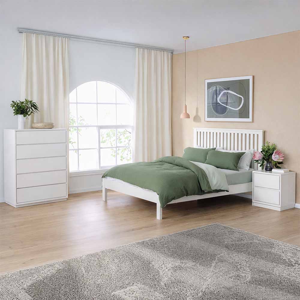 The Verona Tallboy delivers generous storage without overwhelming the space. Crafted from solid Messmate timber, its tall, streamlined design maximises drawer storage while keeping a refined footprint. The white finish enhances brightness in the room, while the natural timber construction ensures long-lasting quality. Perfect for organising clothing and essentials, the Verona Tallboy combines everyday functionality with timeless style.